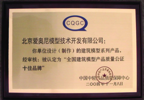 全國(guó)建筑模型產(chǎn)品質(zhì)量公證十佳品牌