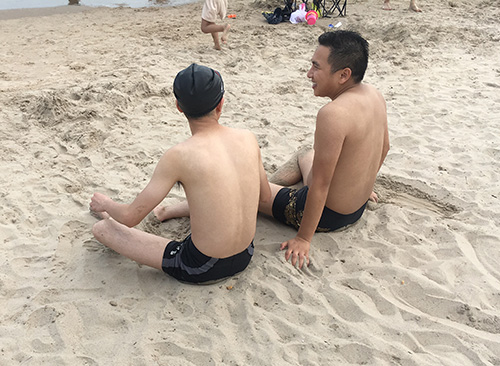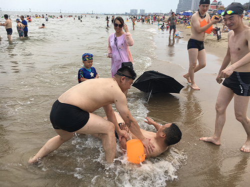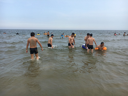 安排完住宿后我們來到了海邊浴場,大家奔跑著、追趕著、陽光浴、沙灘浴,感受到了大海的磅礴和海水的咸澀。