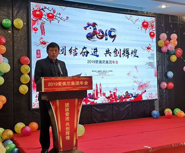 董事長黃長明先生上臺致新年賀詞!黃總回顧了愛奧尼2018年走過的春夏秋冬,肯定了2018年所取得的輝煌成績。