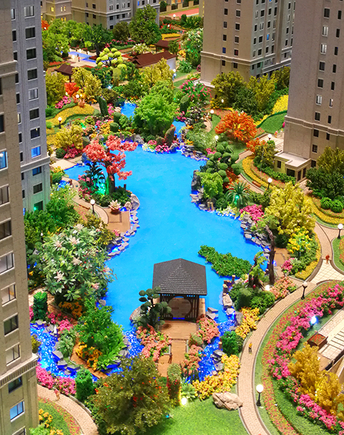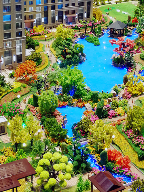 (3)超前性的原則 建筑與環(huán)境設(shè)計是一個循序漸進的過程,在不同的設(shè)計階段有不同的表現(xiàn)模型,隨著設(shè)計的不斷深入,制作的模型愈加精細和具體,但不管是哪一個階段的模型,都是一種設(shè)計理念和思維的表達,是研究性的。所以建筑與環(huán)境模型具有超前性,它是先于建筑與環(huán)境實體產(chǎn)生的,目的是在建筑尚未建成之前給人們一個直觀的評賞機會。